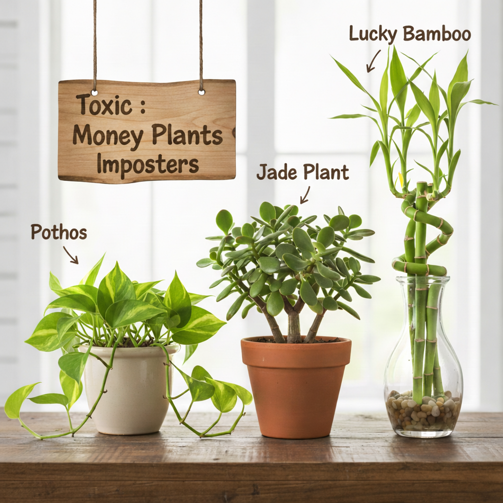 Several genuinely dangerous plants get lumped under “money plant” labels: