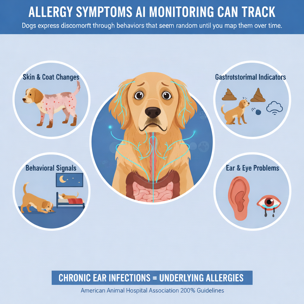 Dogs express discomfort through behaviors that seem random until you map them over time. Atopic dermatitis affects 10-15% of dogs, according to Cornell University College of Veterinary Medicine. The condition typically emerges between six months and three years of age.