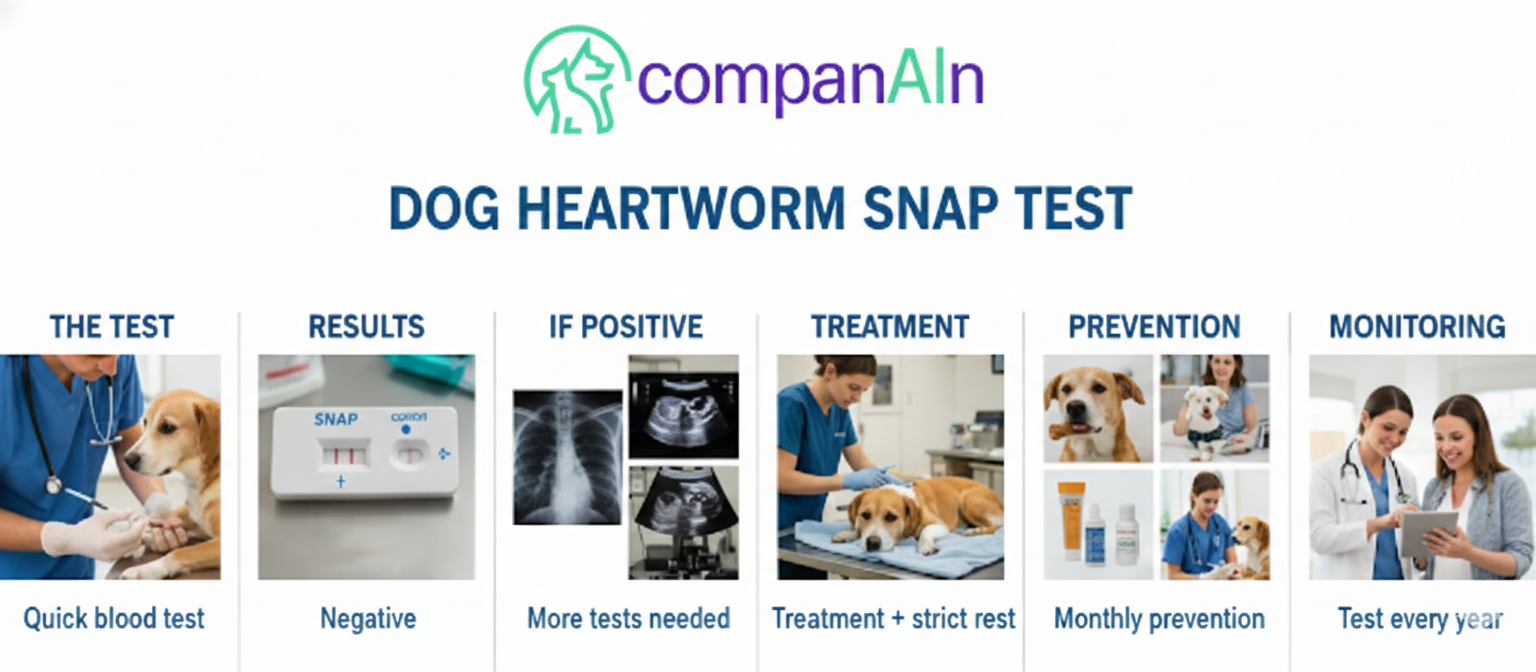Whether managing chronic conditions, tracking treatment responses, or maintaining preventive care, CompanAIn delivers tools that help dogs thrive. Upload test results, consolidate scattered records, and build your dog’s living health timeline. When heartworm SNAP tests reveal concerns, you’ll have the complete context needed for confident next steps.