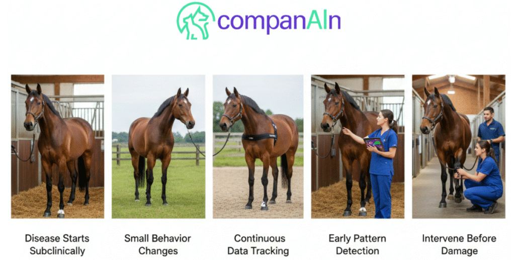 CompanAIn’s agentic AI technology transforms equine healthcare from crisis management to preventive medicine. By analyzing patterns invisible to periodic examinations, the platform enables veterinarians to intervene when treatment works best—before symptoms appear, before structures fail, before careers end.